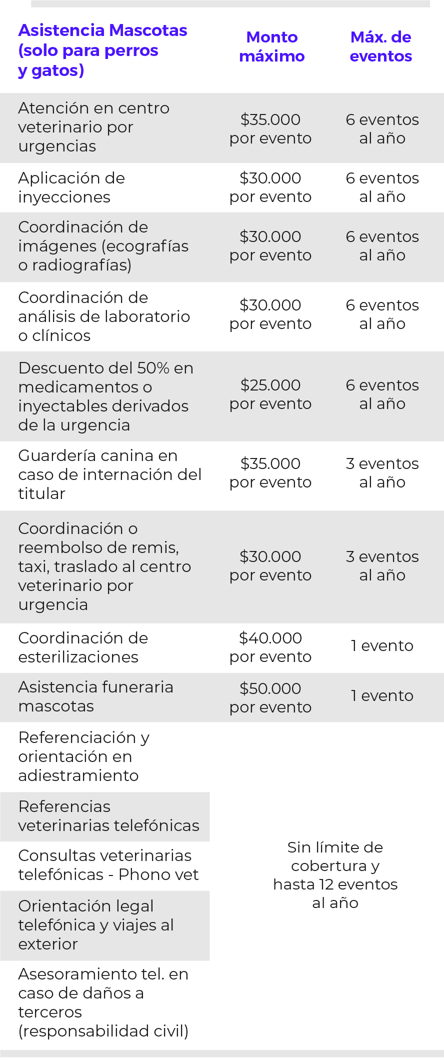 Monto máximo: Sin límite de cobertura