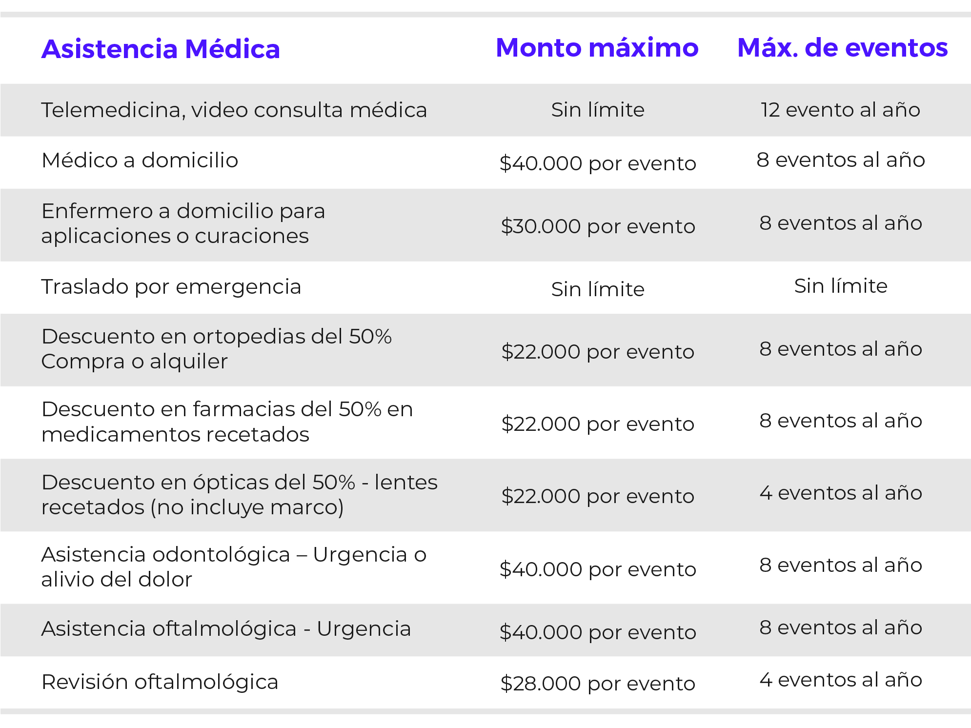 Cobertura: $35.000 por evento